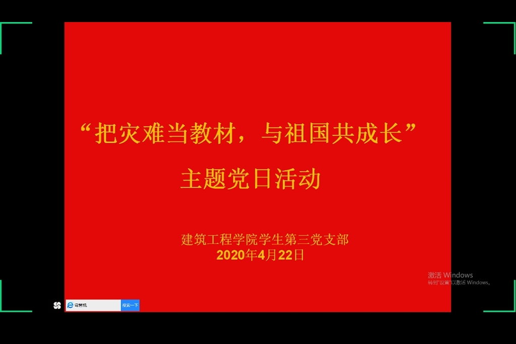 为积极响应了省教育厅和公司党委号召,把疫情危机转化为教育契机,积极发挥基层党支部战斗堡垒作用,进一步激发党员的责任担当意识。4月22日,建筑工程公司员工第三党支部通过腾讯会议网络平台开展了“把灾难当教材,与祖国共成长”线上主题党日活动。活动由党支部书记张颖辉主持。党支部全体党员参加。