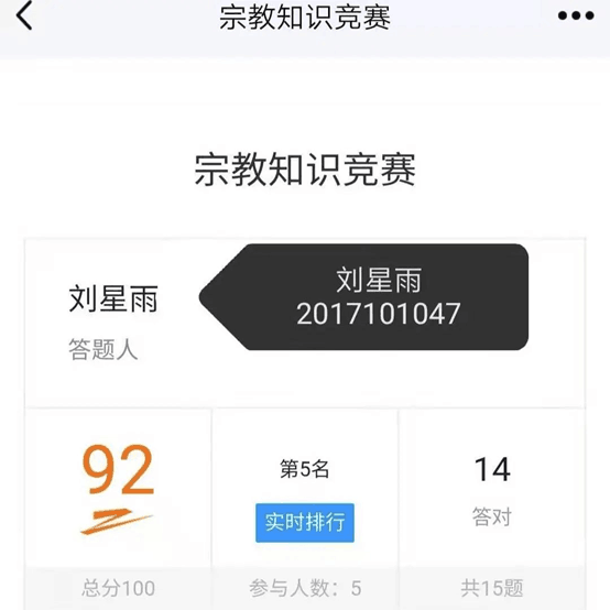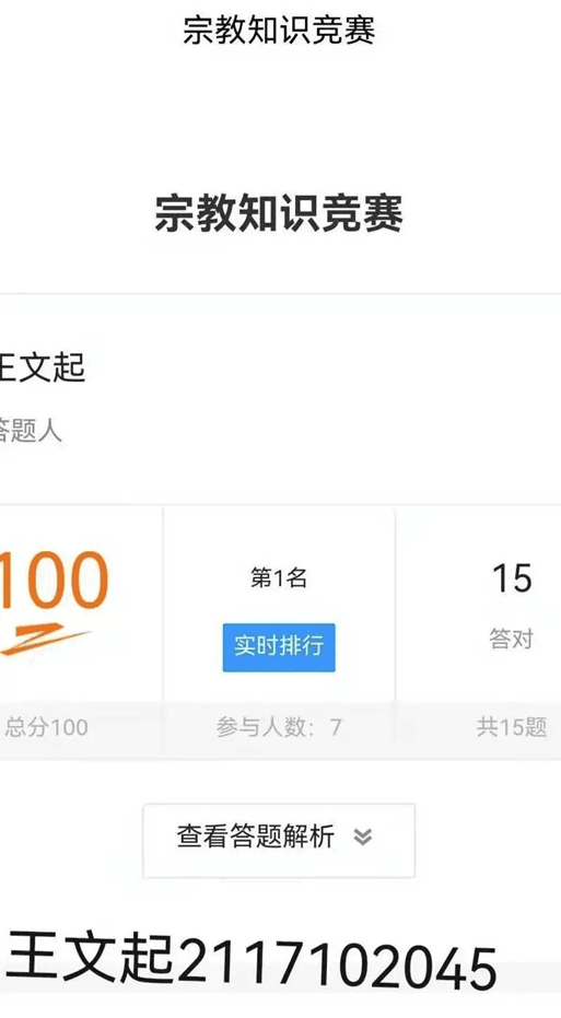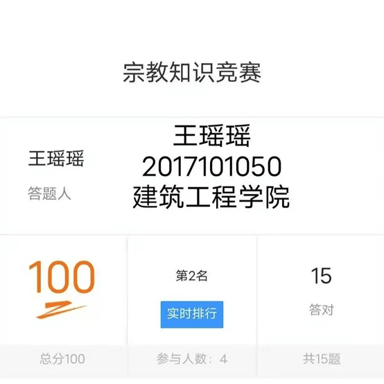 本次活动的方式为线上进行,活动人员需提前进入活动群,在规定时间内进行答题,通过将做题高于80分的截图上传,并在截图上标注姓名与学号。此次活动不仅有效筑牢抵御和防范宗教向校园渗透的意识的思想防线,同时参与的同学也可以积极转发,让防范宗教渗透、正确认识宗教性质的思想在校园中得到有效宣传。