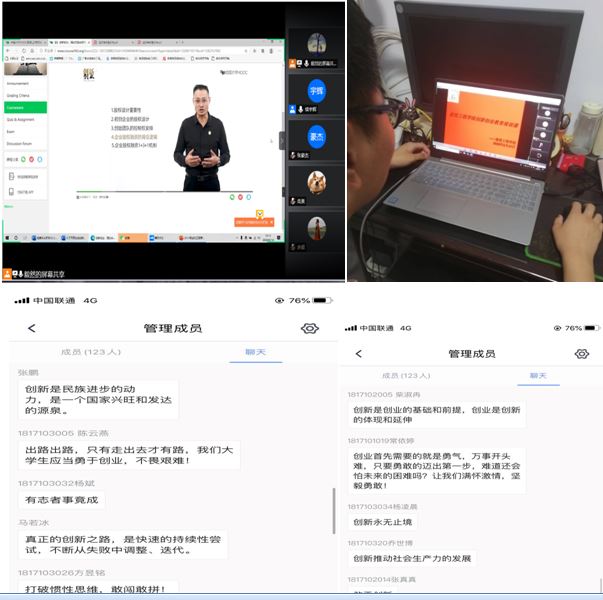 各班级为单位相继组织670余人观看了,河南省创新创业教育在线公益6个讲座。根据不同的年级不同需求,分别分类学习收看《老员工创业基础》《老员工职业发展与就业指导》、《创新创业教育与工程设计实践》《创新创业大赛赛前特训》《老员工创业之基本认知》等课题讲座。另外还对员工创新创业群推送2020届毕业生创业帮扶百日冲刺,直播电商等讲座。各名校名师观点新颖,论证严密,基本认知、成功典范以及职业发展,让各们老师、员工全方位、多角度、深层次了解创新创业大赛参赛技巧。