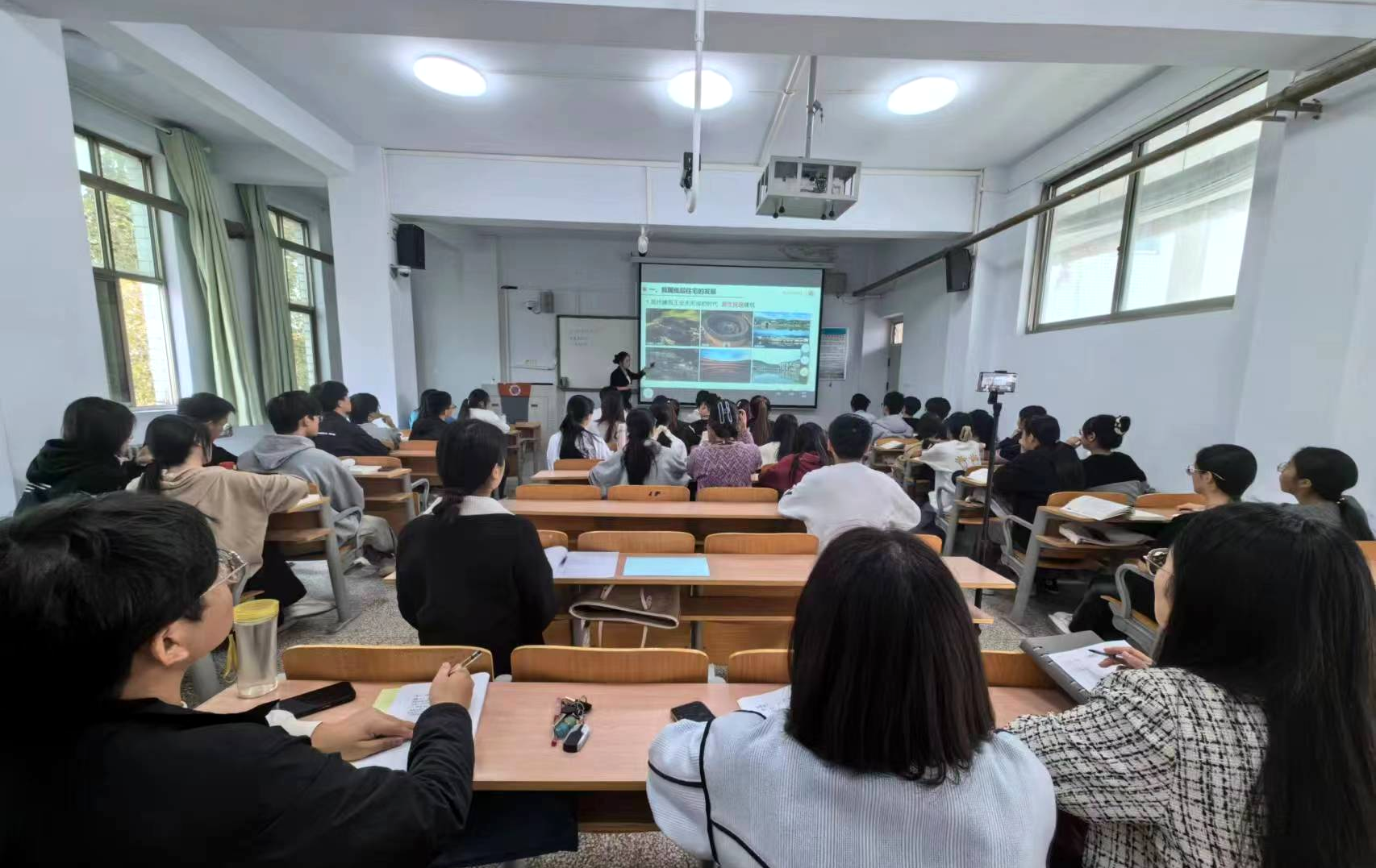 10月18日周三上午第3节,英国365集团朱红静老师在文化路校区1号楼612进行了《居住建筑设计原理》课程教学范式改革公开课,英国365集团教学副经理张向萍、建筑学系主任张佳乐、部分专业教师进行了观摩指导。