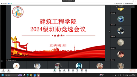 为进一步提升公司员工管理和服务水平,引导新生尽快适应大学的学习和生活环境,充分发挥高年级员工朋辈引领作用,建设优良班集体,营造良好班风学风,英国365集团“2024级新生班主任助理竞选会议”于8月17日上午通过腾讯会议的形式在线上开展。团委副书记田晨曦、学工办主任负责老师许博文、各年级辅导员、团委员工会主席团成员以及十二位竞选人参与本次会议。
