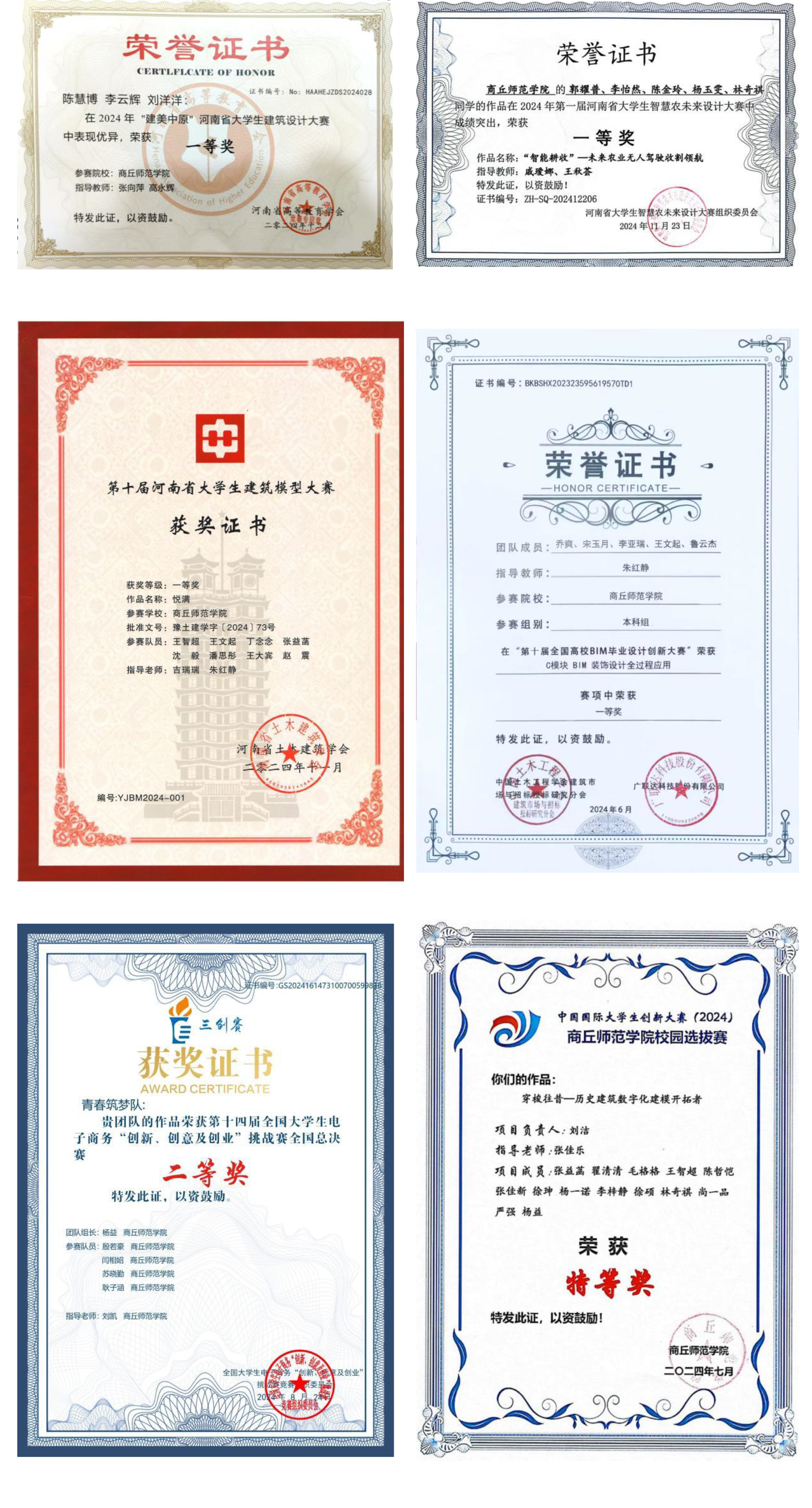 专业特色:在人工智能背景下,以专业教学为中心,科学研究为引领,服务地方为助力,面向新工科建设需求,培养具备学科交叉能力、技艺融合素养、理论实践统一的应用型创新型人才。通过“基础训练—专业训练—综合训练”三阶段培养,依托“宽、放、强”教学过程,采用“教师+员工+实训+竞赛”人才培养模式,对标工程教育认证与一流专业建设标准,为“设计河南”及现代化河南建设输送高素质建筑学科人才。
